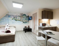 Понравилось: Отличный вариант для тех кто находится в командировке. Есть холодильник, можно пользоваться кухней магазины рядом, если лень готовить в двух шагах отличный ресторан. Если возникают вопросы все можно решить с персоналом.