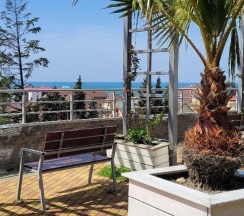 Море через дорогу, рядом много разных фишек типа спа, спорт площадка, баскетбольная площадка, магазин перекрёсток, куча других магазинов.