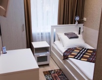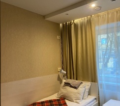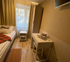 Отличный чистый свежий одноместный номер. Тихо, можно отоспаться после дороги и перед работой. В душе одноразовые шампунь, гель для душа, мыло, зубная паста и щётка, несколько полотенец. Никаких посторонних запахов