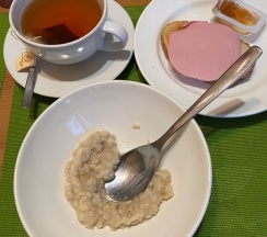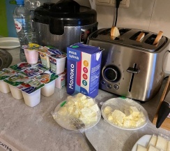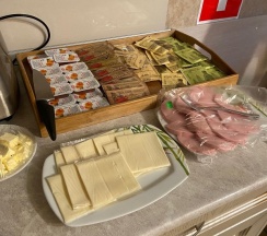 Завтраки бюджетные, но разнообразные, были и йогурты, и хлопья с молоком, каша, сосиски, сыр/хлеб/колбаса/масло/джем.