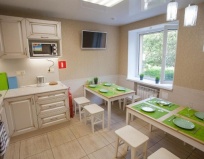 Понравилось: Очень чисто! ремонт свежий, все светленькое. Чай, кофе, кипяток всегда в доступе. Есть завтраки: кашка быстрого приготовления, фрукт, сыр, джем, зефир, батон. Более чем достаточно для утренней зарядки. Сетевые магазины в шаговой доступности.