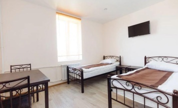 В номере: Две кровати размером 120*200, Две прикроватные тумбочки, Стол, Шкаф для одежды, Зеркало, Телевизор (цифровое ТВ), Бесплатный Wi-Fi, Санузел, Душ, Полотенца, тапочки, туалетные принадлежности.