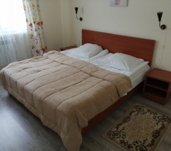Понравилось: Удобно ехать, достаточно большая парковка (когда отель не полностью заполнен), есть, пусть и достаточно скромный, завтрак (плюс можно ещё и что-то своё донести, в добавок к штатному). Доброжелательный персонал, стойка работает 24 часа. Номер чистый, убирались раз в 2 дня. Совсем рядом город с разными магазинами. Не понравилось: Были осенью, батарея грела очень сильно. Регулировки не ней нет, только кран, чтобы перекрывать воду. Но если закрыть - начинает течь труба. Если открыть, даже не сильно - на улице небольшой минус, в комнате весьма жарко и достаточно душно. Если открыть окно - то температура отличная и не душно, но шум от трассы, которая проходит рядом со зданием мешает спать. Завтрак весьма скромный - немного каши, одно из блюд на выбор (яичница, омлет, иногда блины), бутерброд с ветчиной, масло, джем и чай/кофе за 250р. Когда отель заполнен полностью на парковке нет разметки в итоге все встают кто во что горазд.