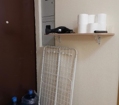 Заказываю всегда номер комфорт. Есть чайник, микров печь. Утюг, фен в холле, всегда доступны, одноразовая посуда, и т. д.