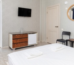 1-4 этаж, 22-28 м², номер с балконом / без балкона, большая кровать 160х200, раскладной диван 145х200, кондиционер, мини холодильник, TV32, санузел с душевой кабиной.