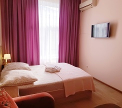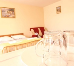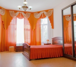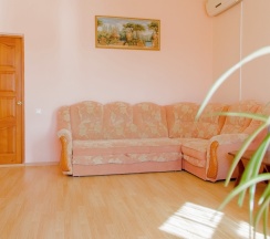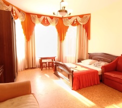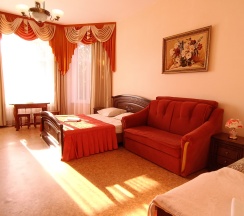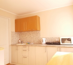 Номер Апартамент это полноценная двухкомнатная квартира с отдельной кухней. Расположен на первом этаже основного здания. Подходит для проживания шести гостей. Главная особенность данного номера это полноценная кухня оснащенная всем необходимым для приготовления и приёма пищи.