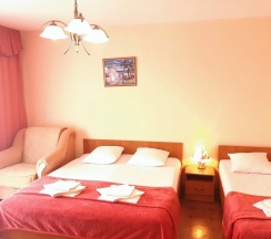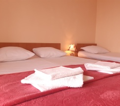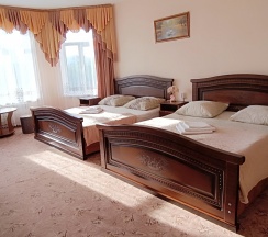 Однокомнатный семейный номер расположен в основном здании. Подходит для проживания пяти гостей. Имеет всё необходимое для комфортного отдыха: двухспальная кровать, односпальная кровать или раскладной диван, раскладное кресло, кондиционер, холодильник, телевизор, санузел, душ.