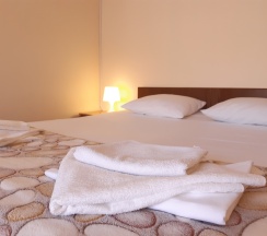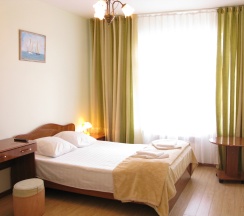 Однокомнатный четырехместный номер расположен в основном здании. Подходит для проживания четырёх гостей. Имеет всё необходимое для комфортного отдыха: двухспальная кровать, односпальная кровать или раскладной диван, кондиционер, холодильник, телевизор, санузел, душ.