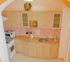 Номер расположен в отдельном здании на 2 этаже. с отдельным входом. Состоит из жилой комнаты (спальни) и кухни. Кухня оснащена всем необходимым для приготовления и приёма пищи. В спальне 4 спальных места двухспальная кровать и раскладной диван.