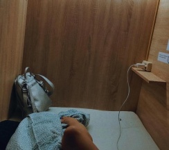 удобная капсула, есть розетки, WiFi хороший. Основная комната с буфетом и зоной отдыха тоже хорошая и уютная