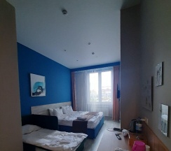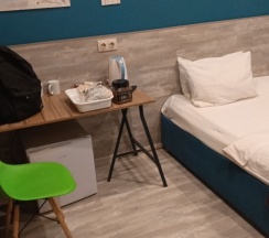 Новый, хороший мини отель. Все свежее, чистое. Есть чайник и кружки, кофе, чай, сахар, холодильник и кровать удобная. Полотенца уже застиранные, но чистые. Минус- нет своей парковки и не понятна организация оплаты, деньги отдали, чек не дали. Ставим 5 за комфорт в номере. Рядом магазины, кафе и рестораны и даже торговый центр какой-то.