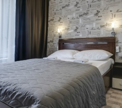 Уютный, просторный номер с большой двухспальной кроватью. Ванная комната расположена в номере. Имеются прикроватные тумбочки, светильники, плазменный телевизор.