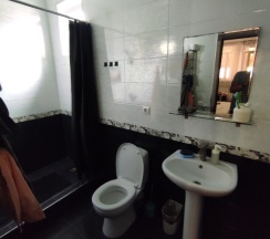 Не понравилось: Немного сантехнику отмыть или обновить бы. Повеселила душевая лейка. Без крепления, если держать в руке, мыться неудобно. А если оставить на стене - бьёт в противоположную стену) И окно ещё с прозрачным стеклом, напротив жилой дом.