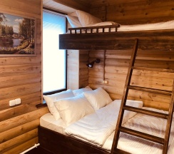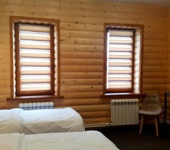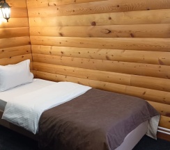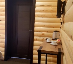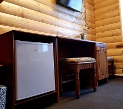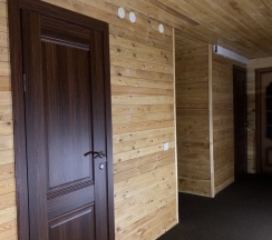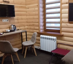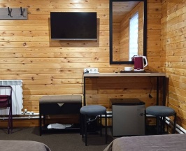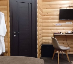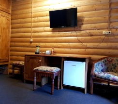 Гостиничные номера со всеми удобствами отделаны материалами хвойных пород деревьев.
