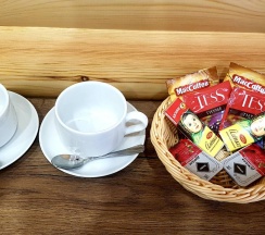 В номере : чайник, мини-бар, чайный набор.