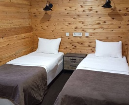 Номер , с двумя отдельными кроватями ручной работы , номер теплый ,уютный. Телевизор, чайник, чайно-кофейный набор, мини-бар. Туалетные принадлежности.: полотенца, тапочки, шампунь, гель, фен. Ванная комната в номере