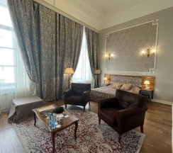 Отель, расположенный в историческом здании времён Николая I, впечатляет с первого взгляда. Внутреннее убранство поражает вниманием к деталям и безупречным вкусом. Здесь всё дышит роскошуютом: от изысканной отделки помещений до мельчайших элементов интерьера.