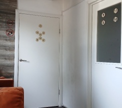 Отличный хостел, очень уютно, как дома. На хостес были молодые девушки, очень вежливые и приятные. В номере было чисто, единственное что не работала вентиляция и было очень душно. Вернулись поздно ночью, нам спокойно открыли и впустили.