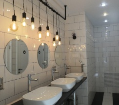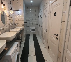 А так оч удобно для поспать одну ночь. И туалет пара-тройка кабинок, и пара кабин душа (всё это на обоих этажах). Стиралка (сушилка для белья была только на пером этаже почему-то, на втором не было). Утюга не заметил..Может и есть, не нуждались просто. Ну и отдельная кухня на несколько мест с парой холодильников, плитой, микроволновкой, мультиваркой, пароваркой, чайником и посудой для посетителей.
