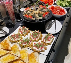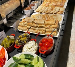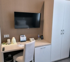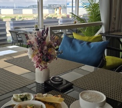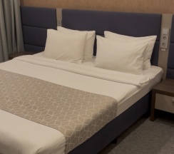 Отдыхали в номере люкс, номер просторный, вид отличный. На завтраках давали роллы - это просто шикарно. Персонал вежливый. Но есть минусы: далеко идти до магазина или аптеки, по карте как будто 3 минуты, но по этим лестницам подниматься «такое себе». Так же номер находится прям над рестораном и по вечерам очень шумно
