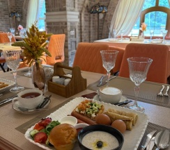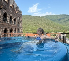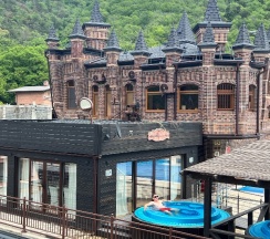 Отдых в этом отеле замке нам очень понравился ! При заселении наливают бокал шампанского! Но ера чистые и уютные. В каждый номер отдельный вход. В номере есть кондиционер , чайник , 2 бутылки 1,5 литра воды, чай, сахар. Очень понравилось, что в номере есть гладильная доска, утюг. Территория охраняемая. Детская площадка, 3 бассейна, купели, хамам, соляная комната. Делали массаж -супер ! Рекомендую отель-замок! Завтраки тоже шикарные и очень вкусные !