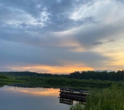 Хорошее место для отдыха. Приезжали двумя большими семьями, 4 взрослых и 4 ребенка. Всем было комфортно. Для малыша был стульчик для кормления, что очень порадовало! Дом чистый, постельное белье и полотенца чистые и опрятные. Дом расположен в своем лесу и посторонние люди не проходят мимо, проезжая часть далеко. На территории комплекса есть свой выход к воде, обустроенный лежаками и плотиком. С плотика можно нырять. Но, нужно быть очень осторожными людям не умеющим плавать и детям, так как в воде резкий обрыв на глубину. Есть своя мангальная зона, терасса возле дома. Комаров практически нет, участок обработан от клещей.