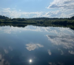 Место замечательное: уютный дом среди леса со всеми необходимыми удобствами, недалеко озерцо. Лес и веранда дома спасают от солнца. В озере вода теплая даже после ночи (12-13 градусов), на берегу шезлонги, пирс для ныряния. Минимум соседей и живописное место создают атмосферу действительно отдыха на природе.