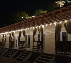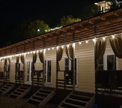 Около моря домики прикольно. Но вот шатер на верху то еще удовольствие. Куча мошкары, лесные клопы и прочие удовольствия. Спишь, а они на подушку падают. Кондиционер при +30 справляется очень тяжело. Один раз можно, но больше не приеду.