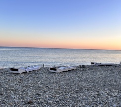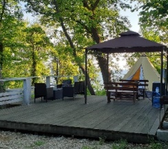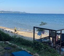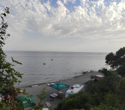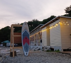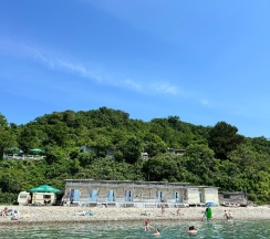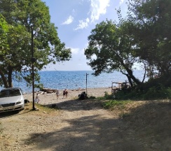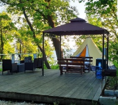 Очень хороший кемпинг. Можно отдыхать в палатках и в номерах. На территории есть баня, где можно попариться и потом окунуться в море. Мы так и делали. Так же можно покушать в кафе. Нам понравилось. Приедем сюда ещё.