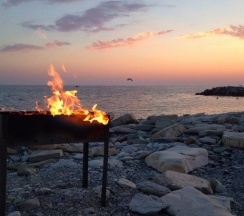 Бревна действительно были на берегу после шторма, ребята каждый день перетаскивали их в одно место, а вечером мы палили костер и смотрели кино на берегу моря. В кемпинге душ и туалет чистые, все работает, единственное для меня огромный минус, это то что дорога к душу и туалету не освещается и она разбита. Но думаю возможно исправят.