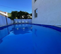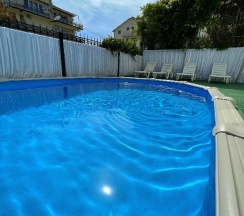 Хороший гостевой дом. Есть столовая, бассейн. Расположение от моря - далековато, но мы были на машине. Из минусов - москитная сетка отходит от окна - комары ночью мешали. Вода в бассейне прохладная, но чистая. Следует заменить наматрасник - был грязный.