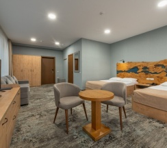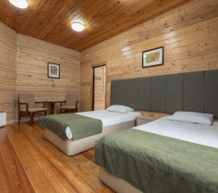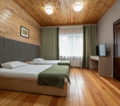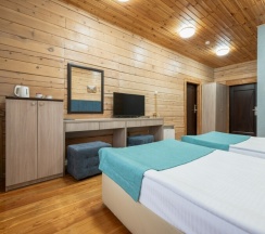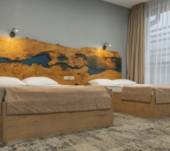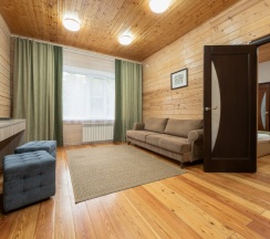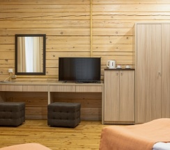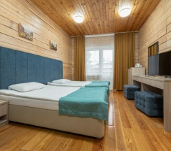 Просторный однокомнатный номер, где есть все необходимое для Вашего комфортного пребывания. Номер отличается современным и стильным интерьером, широкими кроватями и мягким диваном. Номер расположен в здании ресепшн.