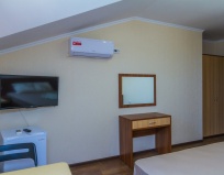 Очень понравился отель! Хозяева приятные люди, которые идут навстречу во всем! Номера чистые, все необходимое имеется,если что-то нужно,без проблем предоставят. Бассейн большой и чистый,есть детская зона. Много лежаков, в том числе и под навесом. На территории беседки, мангальная зона, микроволновка, детская площадка. В основном посетители с детьми. Все тихо и спокойно. До моря близко минут 5. Рядом магазины, аптеки, столовая. Месторасположение отеля очень удачное. Есть парковка.
