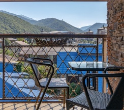 Современный номер Deluxe на двоих с балконом, видом на горы и внутренний двор. Вы можете выбрать номер с двуспальной кроватью или двумя односпальными. Площадь номера составляет 26м2. Гости имеют свободный доступ к посещению SPA комплекса, уличного бассейна и тренажерного зала.