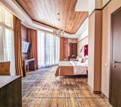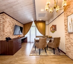 Роскошный номер Luxury создаёт идеальную атмосферу для отдыха. Оснащен двуспальной кроватью размера King size, кухней, большим ЖК телевизором, просторной ванной комнатой и балконом. Подходит для размещения гостей в количестве до 3х человек. Гости имеют свободный доступ к посещению SPA комплекса, уличного бассейна и тренажерного зала.