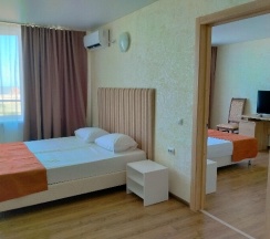 Отель абсолютно новый! Территория большая и облагороженая, в нашем случае неоьходима была зона для детей, а здесь установлены для них мягкие батуты, большой веревочный парк, комплекс с шарами для малышей и все это под открытым небом) Аниматоры для детей всех возрастов и классная детская комната практически круглосуточно)) ребёнок 7 лет просто не отлипал от аниматоров) такое у нас было только в хороших турецких отелях, мы были очень приятно удивлены и успели сами отдохнуть от детей 😄 есть зоны для спокойного вечернего отдыха со столиками, а можно и затусить в кафе у санатория.