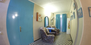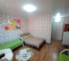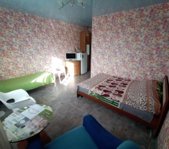 1 комната | 20 м2 | 1 двуспальная кровать + 2 кровати, шкаф, комод, , журнальный столик, вешалка, посуда.