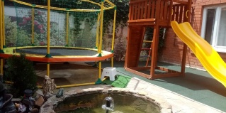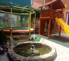 Преимущества: Кафе, пиццерия, блинная. Имеется кухня для самостоятельного приготовления пищи, мангальная зона. Детская площадка ; батут , горка , шведская стенка , настольные игры .Паркинг.