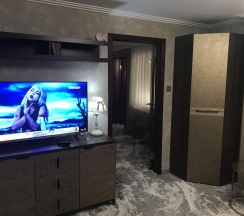 Понравилось: Мебель добротная, качественная. Кровать шириной 180, матрас и подушки удобные, постельное бельё хлопковое, чистейшее, отглаженное! В ванной комнате полочек и крючков достаточно, раковина больная, душевая кабина более чем просторная. В номере есть мини кухня с хорошей посудой и стиральная машина. Планировка номера и расстановка мебели - все очень удобно. Интерьер прекрасный, все подобрано со вкусом! И в этой гостинице по настоящему чисто!!!