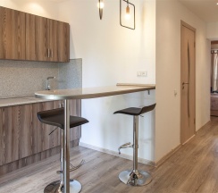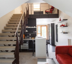 Размещение детей до 7 лет в двухуровневых апартах запрещено из-за открытой лестницы.