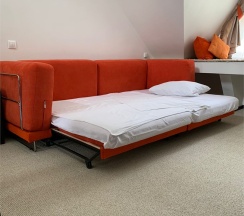 Допустимо размещение третьего и четвертого человека в номер, на дополнительном месте (диван раскладывается) за дополнительную плату. Предоставляется дополнительный набор полотенец. Внимание, мы не гарантируем комфортность дополнительного спального места, оно не предназначено для длительного проживания.