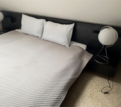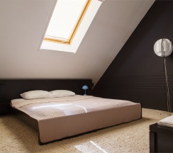 На верхнем этаже - спальная зона с двуспальной кроватью, кондиционер.