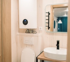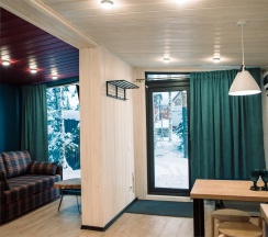 Провели чудесные выходные в домике с видом на лес. В сентябре уже прохладно, очень боялись замёрзнуть и поэтому выбрали этот Guest House из-за наличия теплого пола. Домик большой, стильный и уютный. Глядя в окно, создаётся впечатление, что ты в тайге. Новая сантехника. Свой водонагреватель. Отличное мыло, гель для душа и шикарный шампунь. Волосы блестели и хорошо расчесались даже без бальзама. Мощный фен. Завтраки всегда свежие. На выбор каша или яичница. Сыр, колбаса, фрукты. Блины, оладушки. Булочки, йогурты, творожные сырки. Единственное, нет кофе, но мы брали с собой и пили в домике. В отеле тихо и спокойно. Спасибо за гостеприимство и расслабляющий отдых!