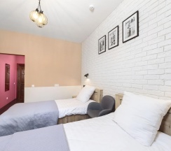 Комната с двумя удобными односпальными кроватями. В каждой комнате: две прикроватные тумбочки, журнальный /кофейный столик, кресло, зеркало, шкаф для одежды.