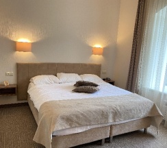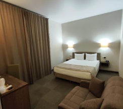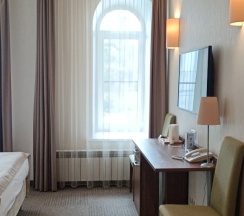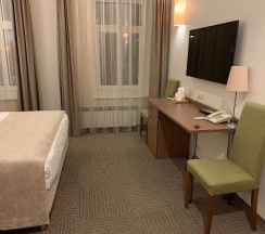 Проживали в номере "комфорт" #202. В номере чисто, вкусно пахнет, есть все необходимое (даже расческа, которую я по неосторожности забыла дома), халаты, платный мини бар. Учтите, что данный номер выходит на дорогу и несмотря на одностороннее движение перед отелем, ночью проезжающие машины слышно очень хорошо и они будят, приходилось закрывать окна, несмотря на то, что в номере было душновато... Есть кондиционер и летом, скорее всего, он эту проблему решает.
