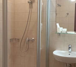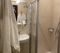 Дети жили в номере "твин" #211. Он проще и меньше, но тоже чистый. В нем вместо ванны - душевая кабина, шампунь и гель для душа в дозаторах. Тапочки есть, халатов нет,но возможно приносят по запросу (мы не спрашивали). Мини бара нет.