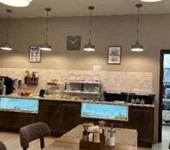 Кафе работает до 23 часов и это очень здорово - не надо никуда бежать. Завтраки вкусные и с достойным выбором.