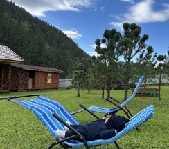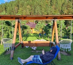 Посчастливилось найти это место в конце нашего путешествия. Это самая лучшая база отдыха из всех, в которых мы были, в том числе, сравнивая с отелями в Горно-Алтайске. Удобное расположение относительно локаций, поблизости - магазины, заправка «Роснефть», кафе. Чистая, ухоженная территория базы, где предусмотрены все мелочи для проведения комфортного отдыха. Хочется минимум сутки провести только на этой базе, чтобы успеть насладиться видом, качелями и лежаками на территории, бассейном, открытой кухней. Очень приятное место, которое собирает интересных людей! Приятно было вечером собраться на открытой кухне, познакомиться с другими гостями и поговорить. Ощущение такое, как будто приехал к родственникам на каникулы - тебя любят, о тебе заботятся, тебе нужно просто отдыхать и наслаждаться.
