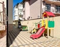 Очень отличное место для отдыха. Отдыхали семьёй с детьми (2 взрослых и 3 детей). От остановки общественного транспорта ( 114, 120 и 128 маршрут) метров 600 (там же "Пятёрочка" и "Fix Price"), рядом минимаркет, шашлычные, разливнушки, столовая. Питаться ходили по рекомендации в "Русские блины" (вкусно, сытно и не дорого) 4 минуты ходьбы. До пляжа "Витязево" минут 20 пешком, в тени и кучей соблазнов для детей))) на такси (с детским креслом) Яндекс до жд вокзала 15 минут за ~230 рублей, подача через 2 минуты. Сам номер-студия 40 м², с балконом, санузлом, большой кроватью, разлаживающимся живаном и креслом, ТV, кондиционер. В номере чисто, уютно, комфортно. Очень тихо внутри и на улице. На территории детская площадка и бассейн. Очень приятнае в общении администрация ( добрые и хорошие люди). В следующее посещение Витязево, однозначно остановимся там же и знакомым буду рекомендовать. )