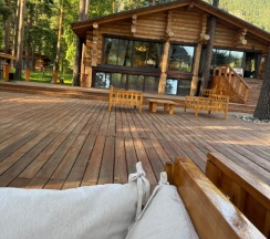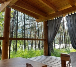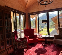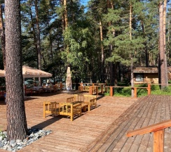 Отличный отель на берегу Катуни, недалеко от местных достопримечательностей, ухоженная территория, через дорогу ремесленная лавка, где можно купить сувениры. Жили в отдельно стоявшем шале "Лесное" номер большой, имеется все необходимое, порадовало наличие кофемашины, современный санузел. Завтраки вообще на высоте. На любой вкус. отдельное спасибо за отличные ланч боксы, которые нам приготовили с собой в дорогу, т.к. выезжали мы рано. Цена за проживание не маленькая но есть акция- третьи сутки в подарок. Из минусов отметим кровать, которая сломалась и отсутствие покрывала на кровати. В целом отель рекомендуем. Выражаем благодарность персоналу за доброжелательное отношение и оперативное решение вопросов